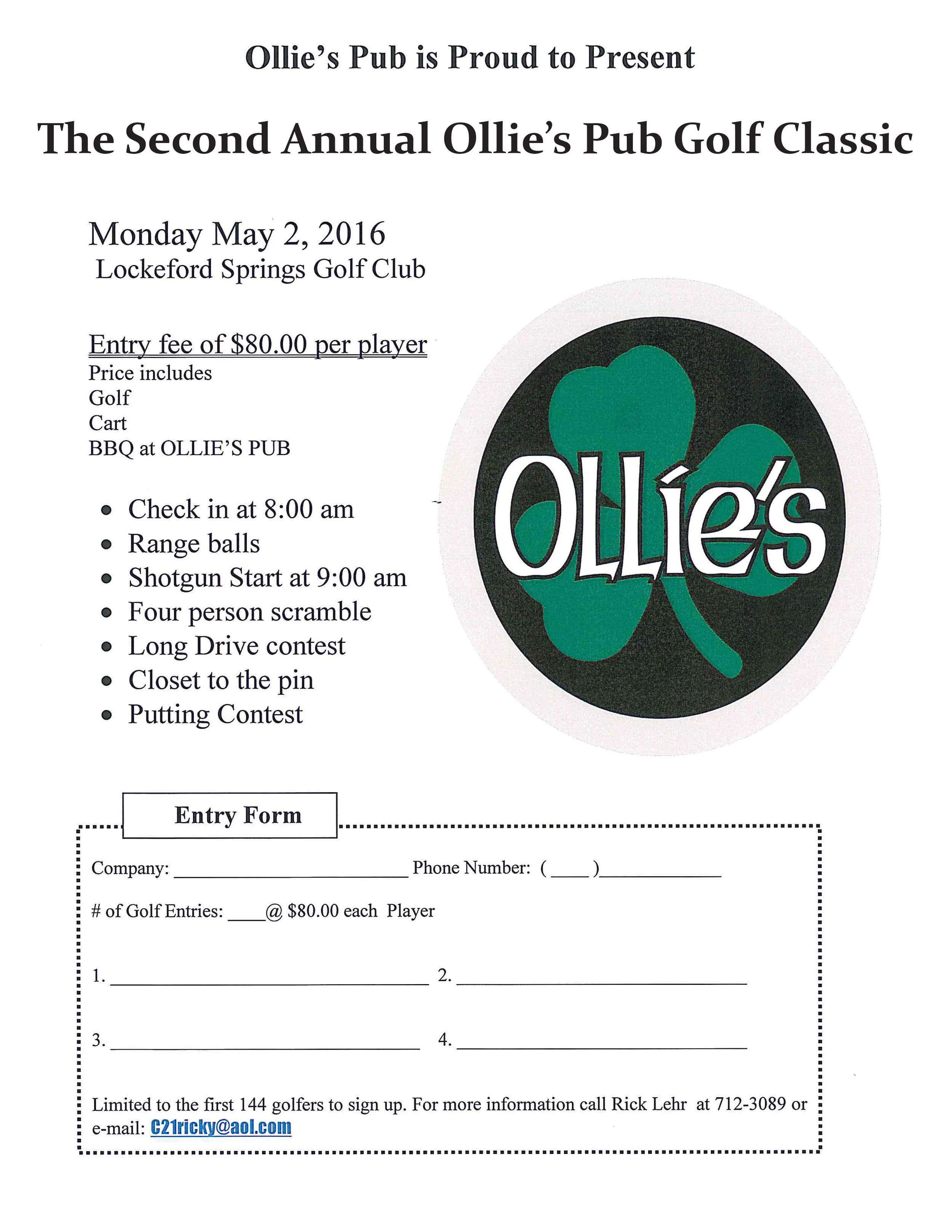 Join Ollie's Pub for the Second Annual Golf Classic at Lockeford Springs Golf Club!